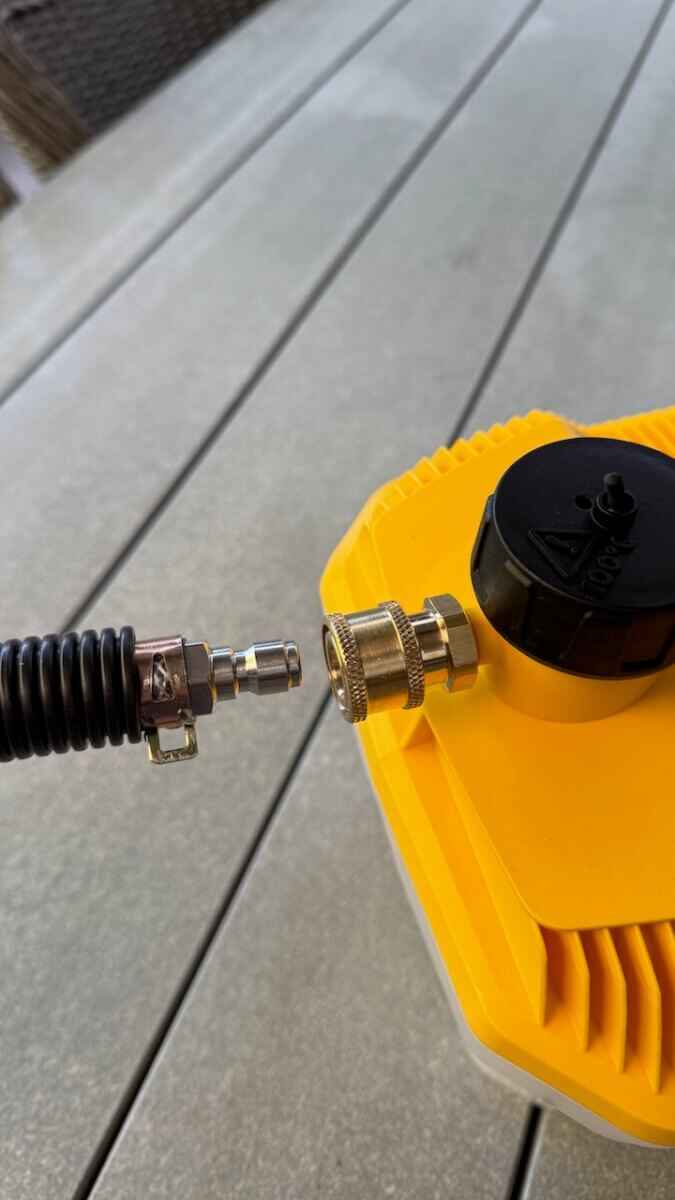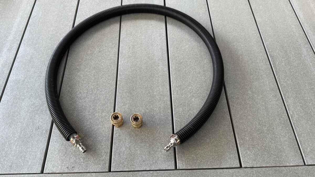 Le tuyau est équipé d'un raccord rapide 1/4" , similaire à celui d'un nettoyeur haute pression. Cela permet de connecter et de déconnecter rapidement et facilement le tuyau de votre nettoyeur vapeur et de votre distributeur de foin. Gain de temps et propreté garantis.